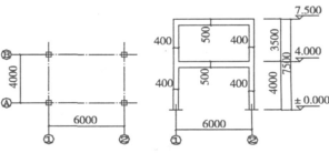 本文主要针对接近地面爆破时, 离爆点水平距离为 10 m 房屋进行模拟, 模型采用了 SOLID65单元[ 7] , 模型尺寸如图 7所示。模型混凝土强度等级为 C30, 梁、板混凝土等级为 C25. 柱为 400 mm 400 mm. 梁高为 500 mm, 板厚均为 100 mm. 由于有两种等级的混凝土, 综合取钢筋混凝土容重为 26kN /m3.
