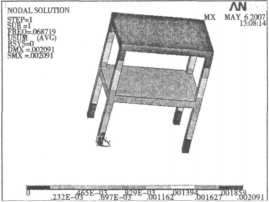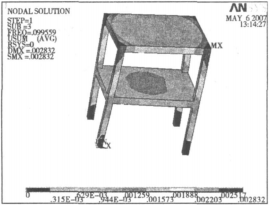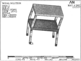 由于建筑结构的动力反应过程是一个多模态的组合, 每个模态都对应不同的频率。不同的模态有完全不同的响应特征。在受迫振动阶段, 高频率影响着结构的振动模态, 但是在自由振动阶段却是低频率起着主导作用。ANSYS 分析结果如图 8 - 图 13所示。