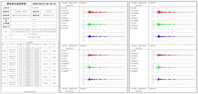 3.监测报告:报告按可分为测点报告和爆次报告,根据项目需要来编制报告,监测单位应对整个项目监测质量负责。监测报告内容应包括监测时间、地点、参与人员、目的和方法、监测点布置、监测仪器和系统的标定结果、监测指标、钻爆参数、实测波形图和监测数据等。当监测数据超过相应的控制标准时,应在规定时间内报告相关部门;竣工报告封面应加盖 CMA 编号章。