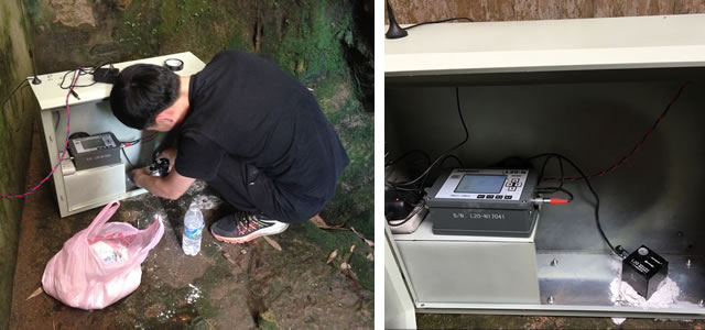 (3)仪器安装:安装前,应对监测点及传感器进行统一编号,在路基安装时,应将测点放置处清理干净,用石膏粉将传感器安装在测点处,传感器与被测目标的表面形成刚性连接,做到牢固、轻巧,传感器X(水平径向)指向爆心并水平放置。在通电不便的情况下,可选用太阳能供电方式进行安装,保证仪器随时处于工作状态。仪器防护箱通过膨胀螺栓固定,相应的信号线牵引至仪器防护箱,因涉及露天爆破监测,传感器应安装在防护箱内或太阳能供电装置的基座下,防护按照《混凝土结构后锚固技术规程》要求进行安装,抗拔力满足100kg要求;安装好后将传感器与主机连接起来,调试仪器参数即可,最后将现场清理干净,多余的耗材应带离现场。