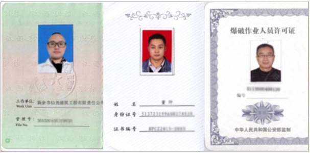人员主要负责人同时持有《爆破工程技术人员安全作业证》(高级)和《安全评价师》(一级)职业资格证书 |