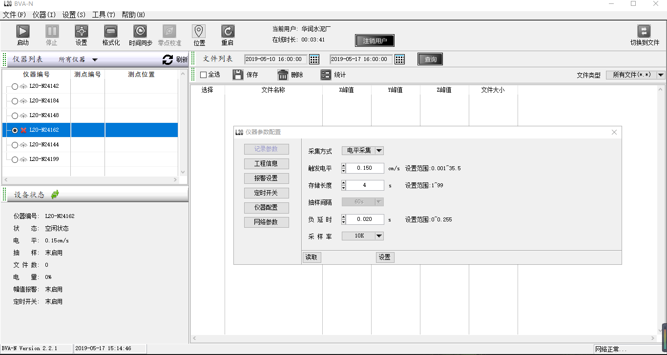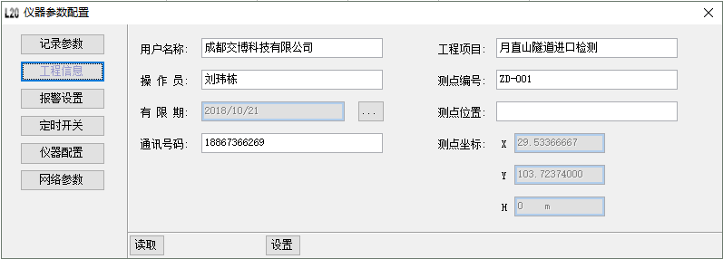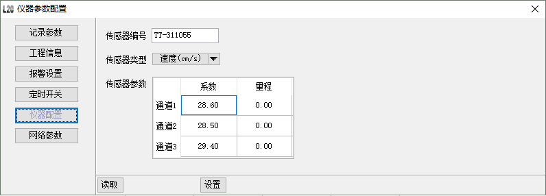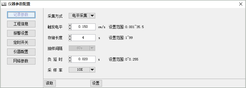 读取仪器当前配置记录信息,设置仪器相关记录参数,